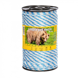 Corda recinto elettrico 200 m, resistenza alla rottura 590 kg, resistenza elettrica 2,3 O/m.
