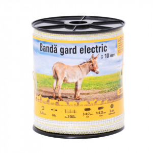 Nastro recinto elettrico 10 mm, 200 m, resistenza alla rottura 60 kg, resistenza elettrica 0,45 O/m.