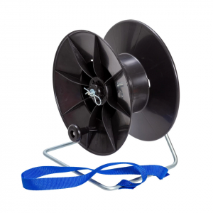 La base è dotata di un sistema di blocco della rotazione del tamburo. L’insieme è inoltre provvisto di una cinghia che consente un utilizzo agevole durante la raccolta o il montaggio del conduttore del recinto elettrico.